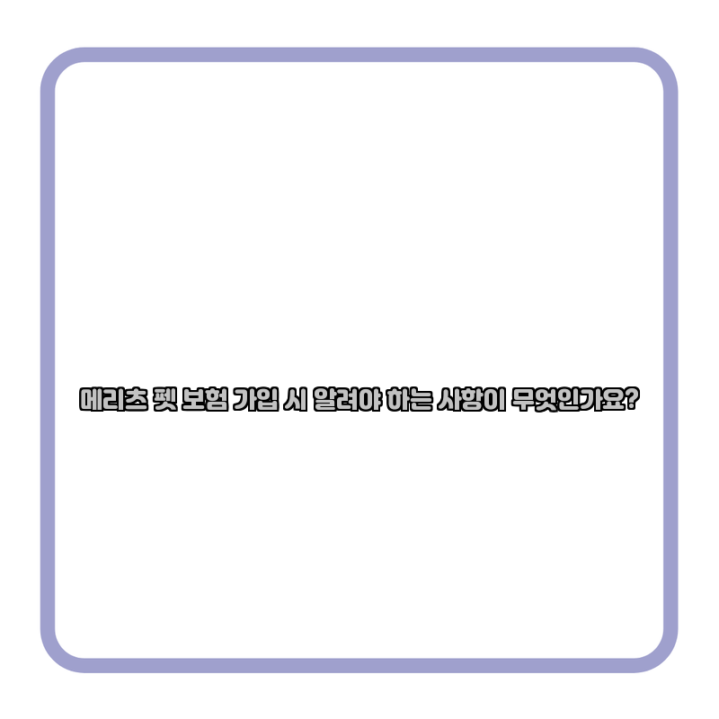 메리츠 펫 보험은 반려동물을 위한 다양한 보험 상품을 제공하여, 소중한 반려동물의 건강과 안전을 보장하는 데 중점을 둡니다. 반려동물의 사고나 질병으로 인한 의료비 부담을 덜어주는 이 보험은 많은 보호자들에게 필수적인 선택이 되고 있습니다. 본 기사에서는 메리츠 펫 보험 가입 시 알고 있어야 할 중요한 사항들을 자세히 살펴보겠습니다.